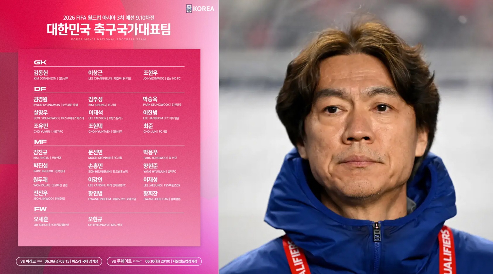 오랜만에 보거나 새로운 이름들도 제법 눈에 띄는 이번 대표팀 명단인데 김민재 대신 김주성이 대체 발탁되었고 양민혁, 배준호, 백승호, 엄지성 선수가 제외되었으며 양현준, 조현택, 김동헌, 전진우, 문선민, 김진규 등 해외파, 국내파 선수들 중 현재 폼이 좋은 선수들 위주로 선발되었습니다.